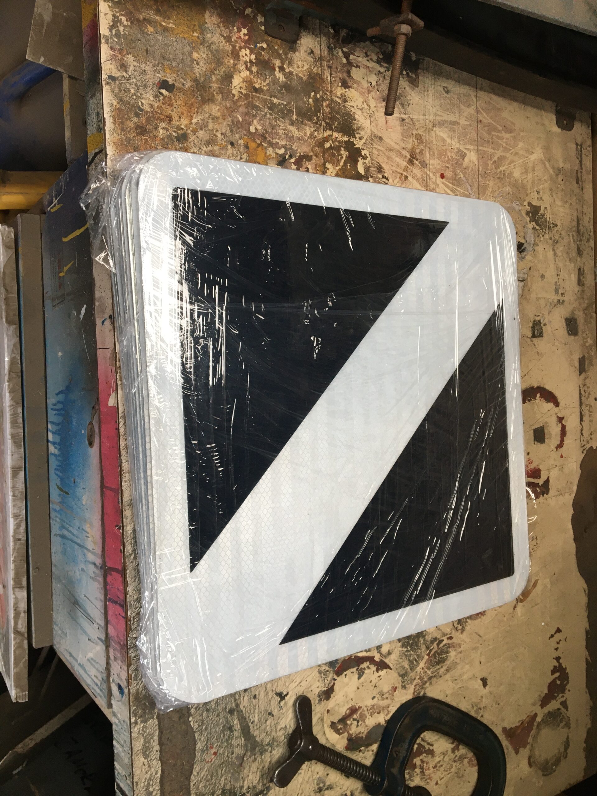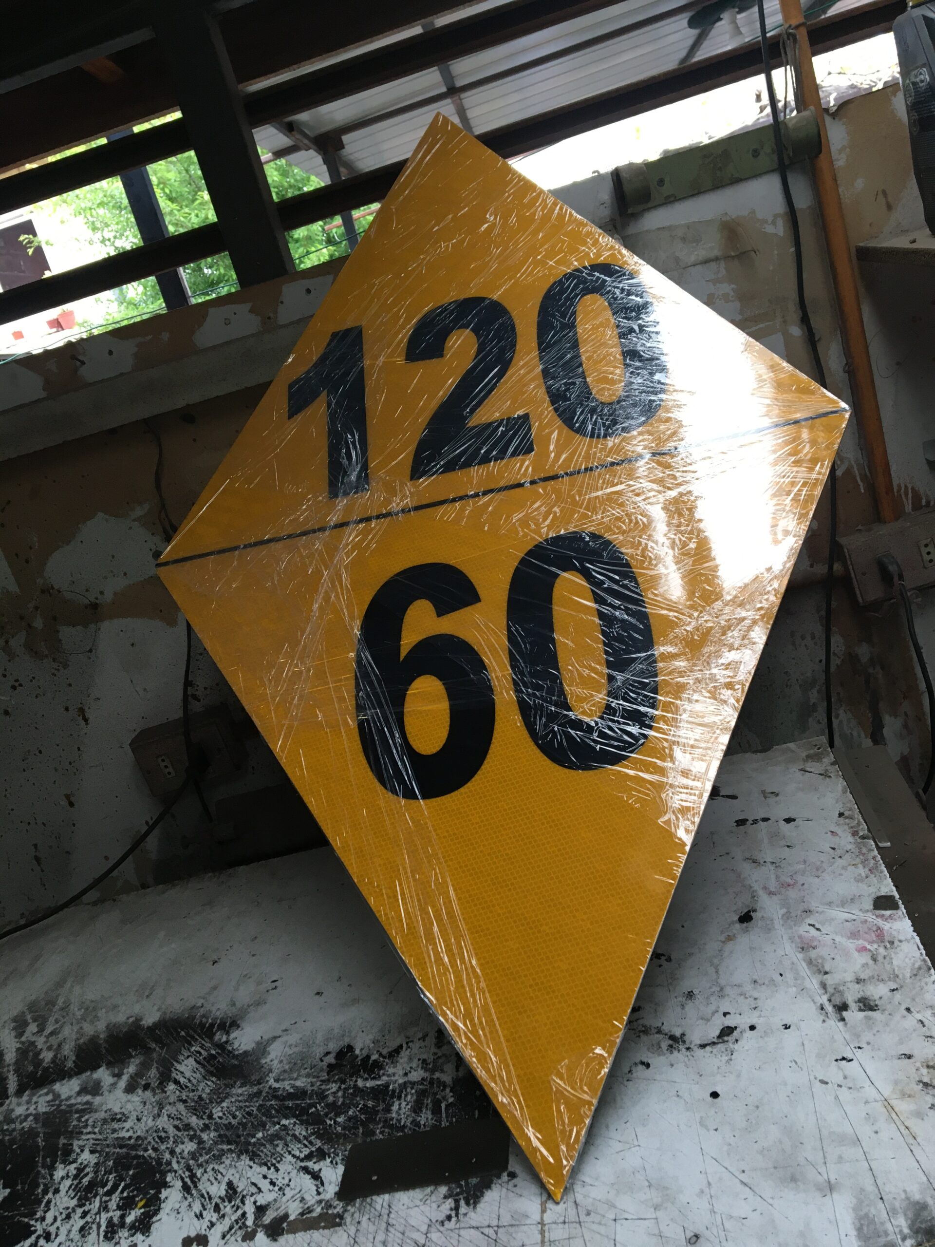 Señalética fabricada en plancha de fierro de 3 mm de espesor, galvanizada por inmersión en caliente. Fondos reflectivos grado ingeniería prismático.
